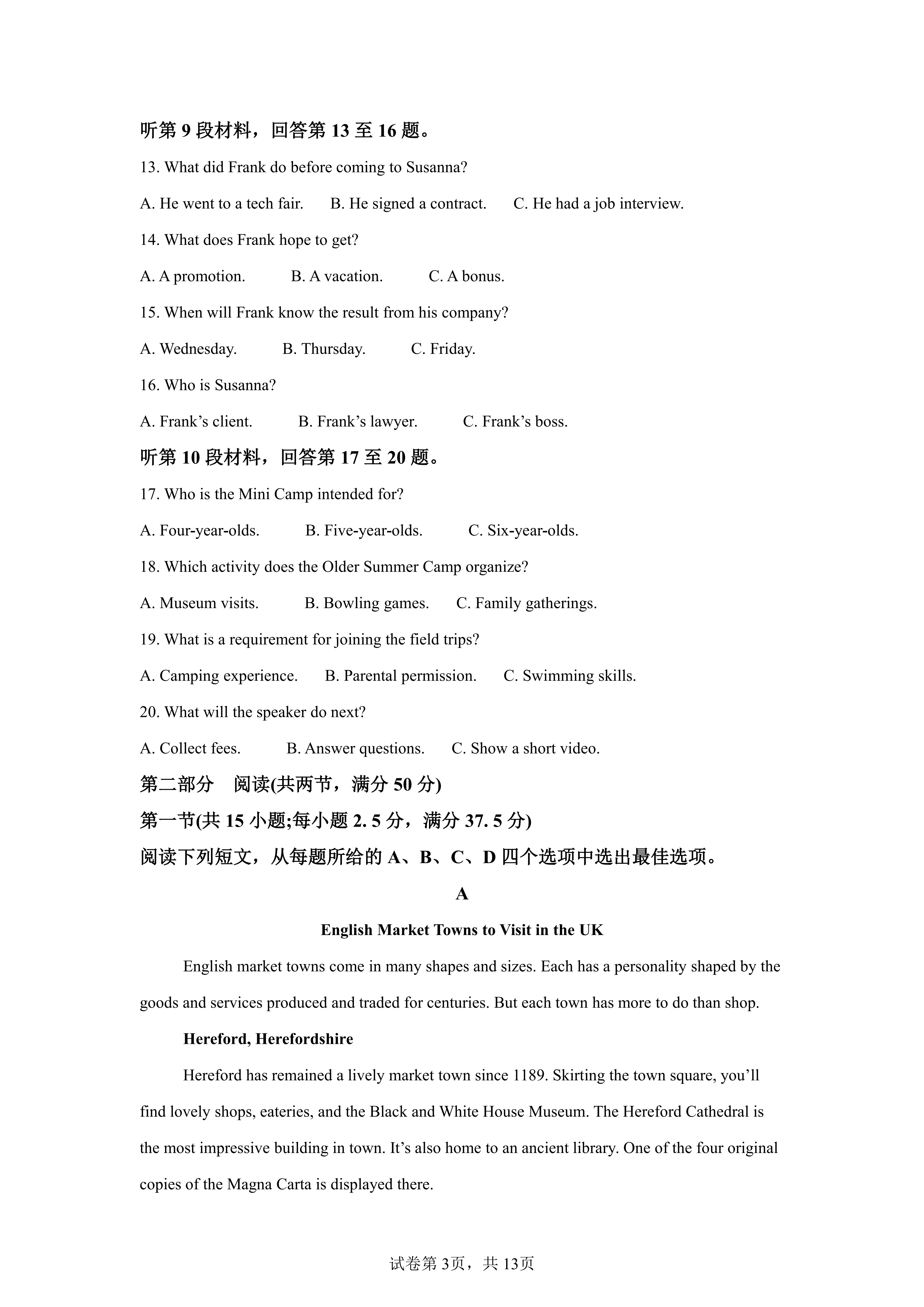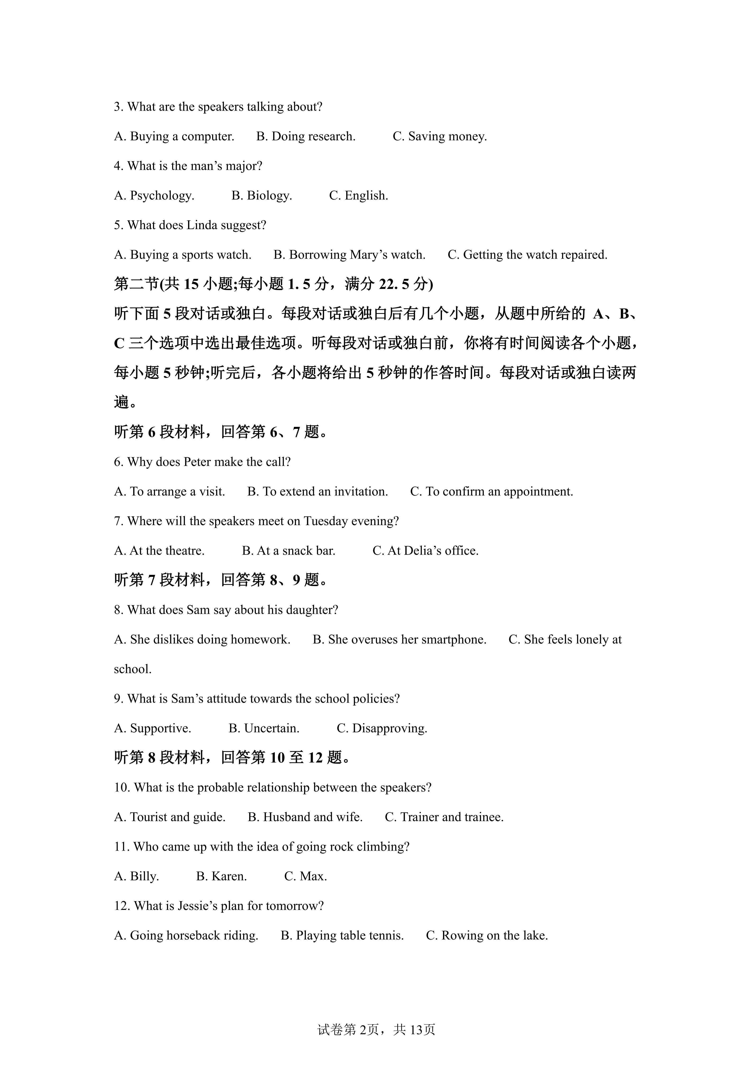 新高考Ⅱ卷英语考试时间:6月8日15:00-17:00