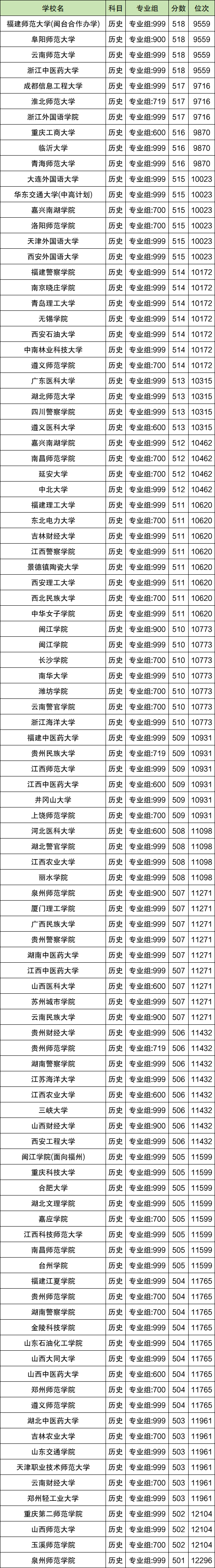 而分数线较高的省内公办二本有福建理工大学511分、福建警察学院514分、福建师范大学(闽台合作办学)518分等。