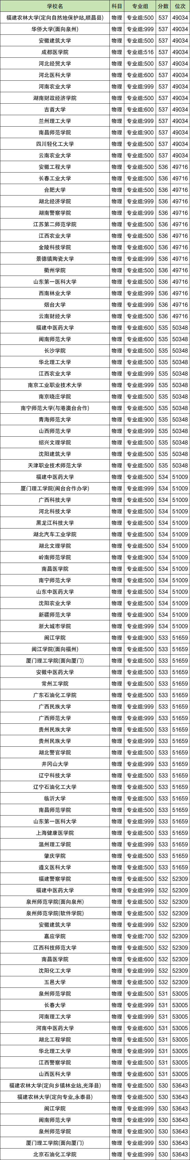 篇幅有限,下面仅列举2024福建物理类公办二本分数线Top100大学名单: