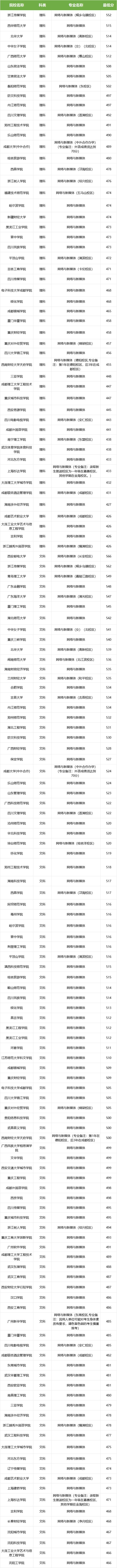 | 网络与新媒体 | 重庆财经学院 | B | 178 |
