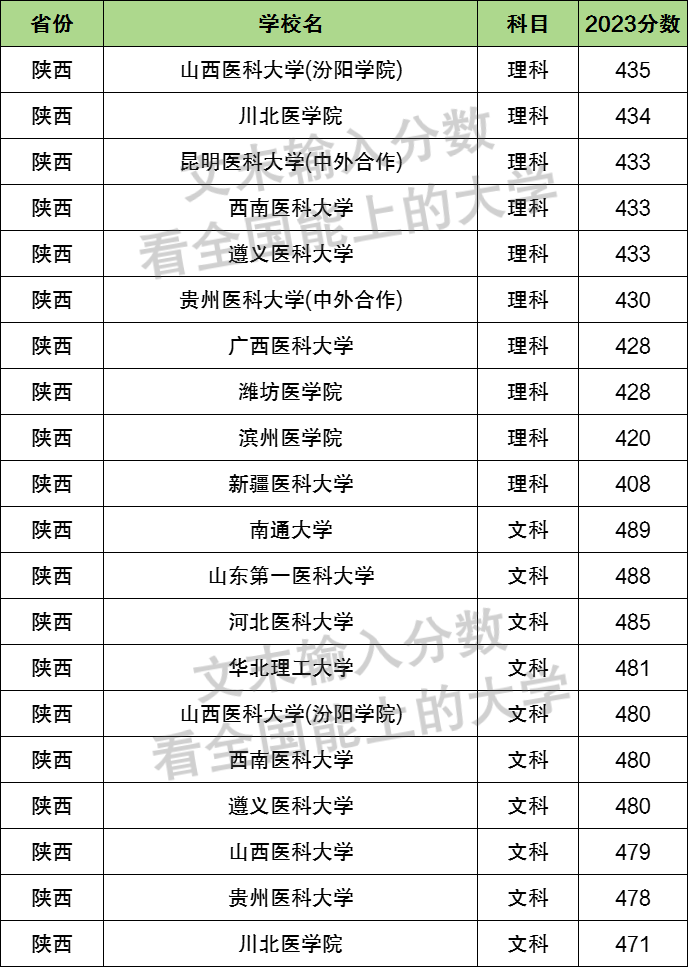 3、在陕西省最低分的二本口腔医学大学中,理科有潍坊医学院、滨州医学院、新疆医科大学等大学,最低仅需408分。文科有山西医科大学、贵州医科大学、川北医学院等大学,407分就有机会考上。