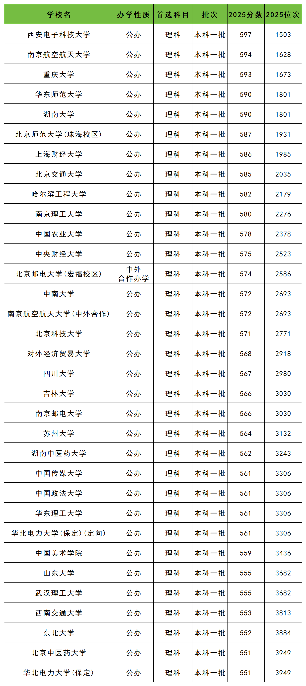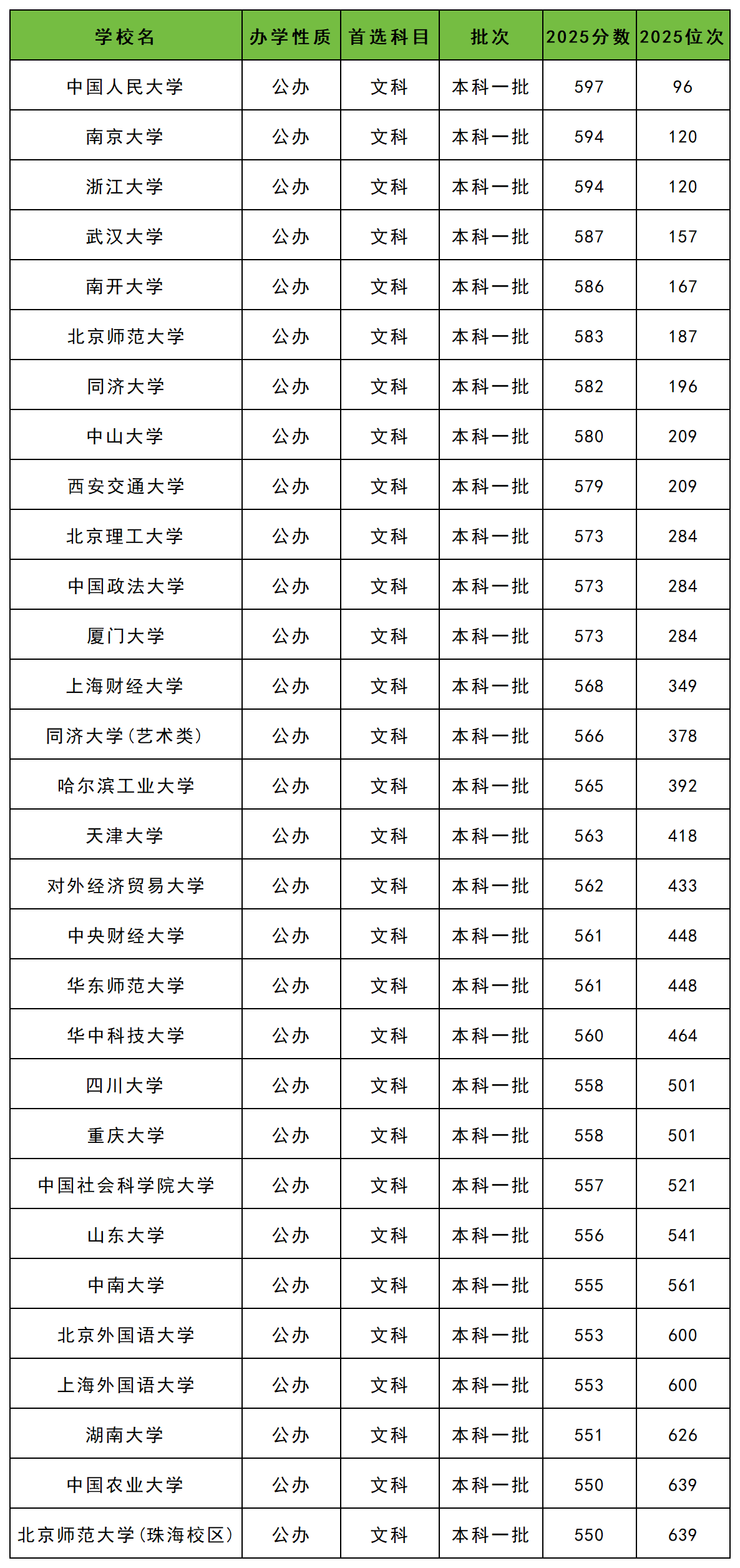 各省550分到600分的大学名单不同,本文以新疆为例,分别整理文科、理科录取分数线位于550-600分的大学。