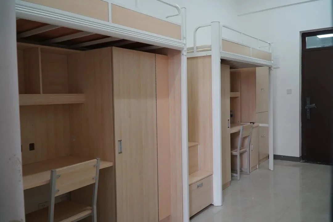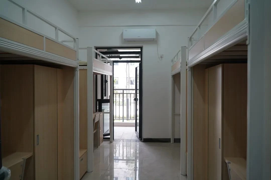 标准宿舍六人间,配有独立卫生间,洗漱台,风扇,衣柜,书架,电脑桌椅等,设施齐全,很好的满足学生日常的生活需求。还有豪华宿舍公寓房,四人寝,套间房,上床下桌、空调、热水、吹风机、洗衣机应有尽有。