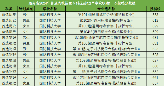 2024年国防科技大学在湖南历史类最低分553分、物理类最低分623分。