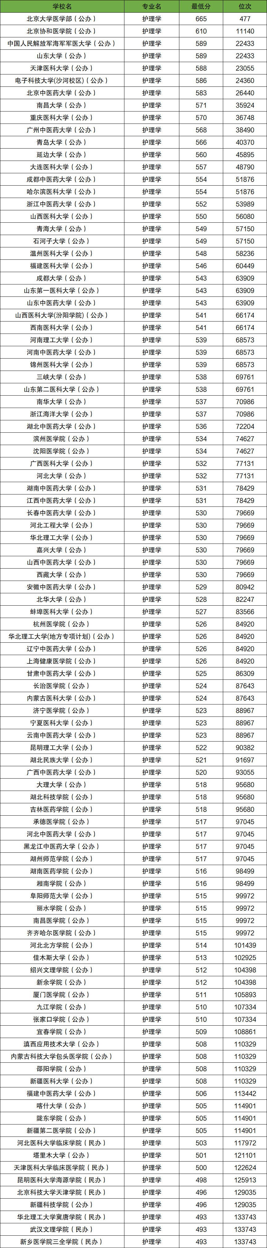 二、护理学2024年录取分数线