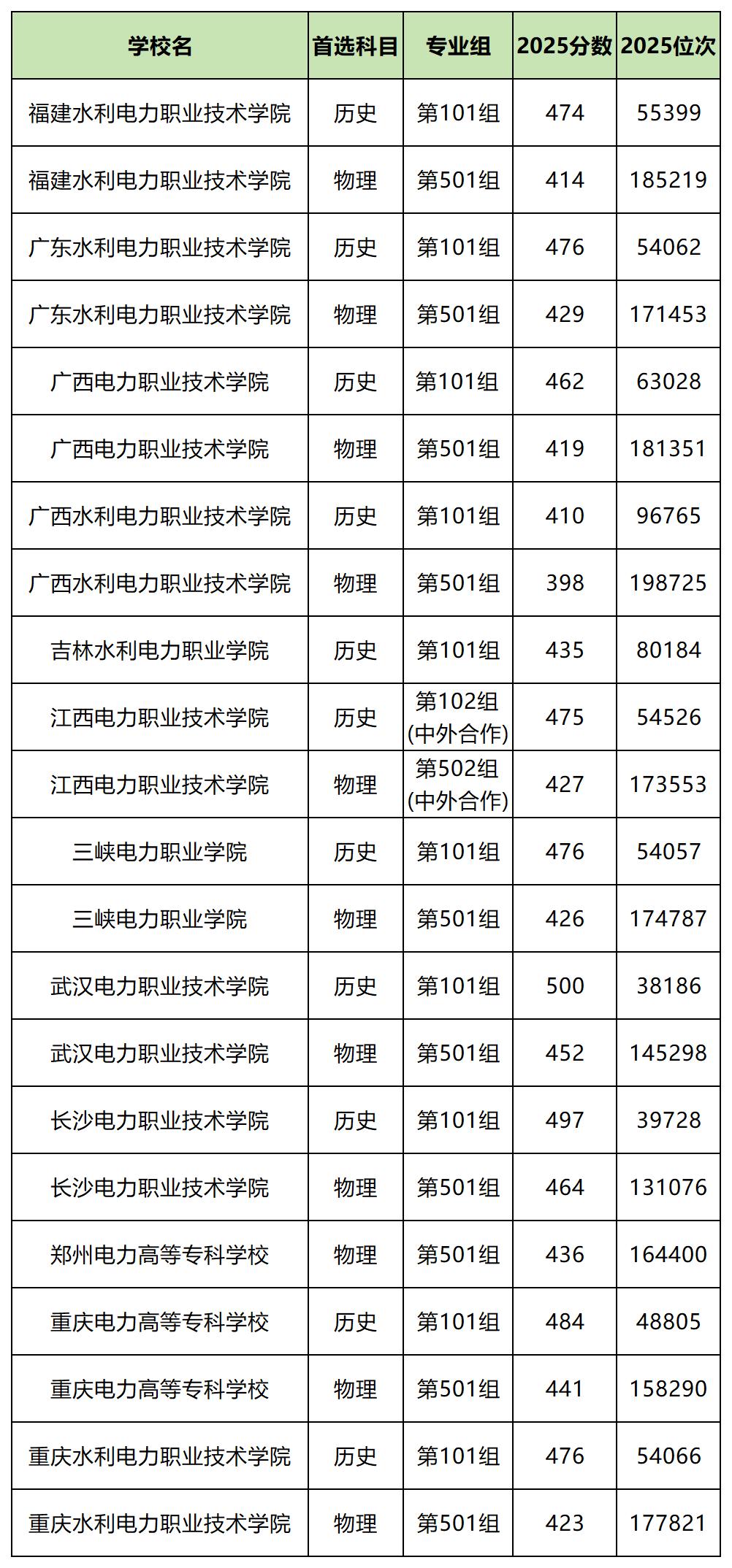 二、2025年电力专科大学各省分数线