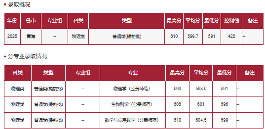 2025年物理类国家公费师范生在青海录取最低分591分,超特控线171分;