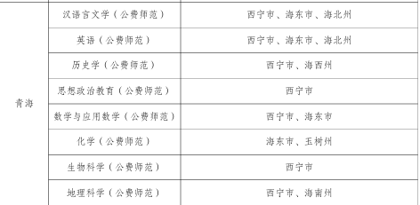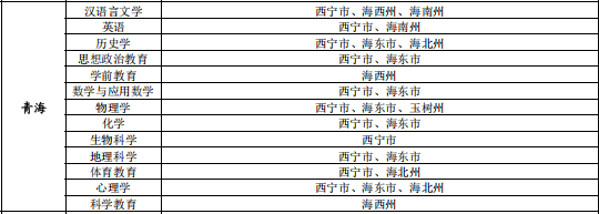 | 汉语言文学 | 西宁市、海东市、黄南州、玉树州 |