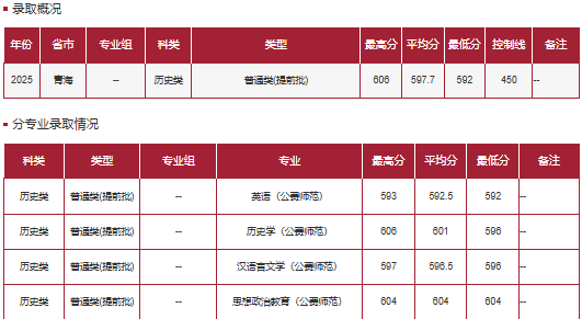 2025年历史类国家公费师范生在青海录取最低分592分,超特控线142分。