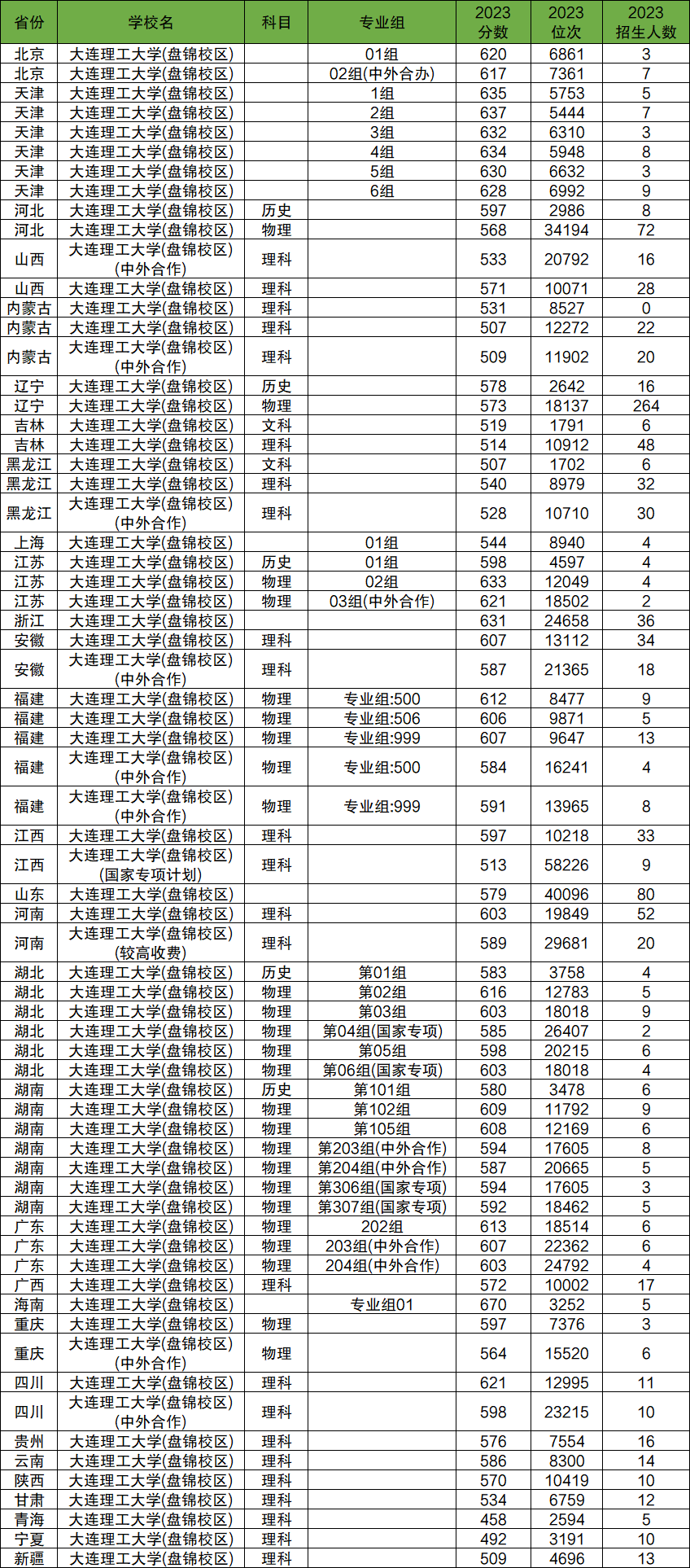 2023年大连理工大学(盘锦校区)在全国各省均有招生,以下将介绍大连理工大学(盘锦校区)在各省的高考招生人数,以及招生专业,最低分数线等内容。