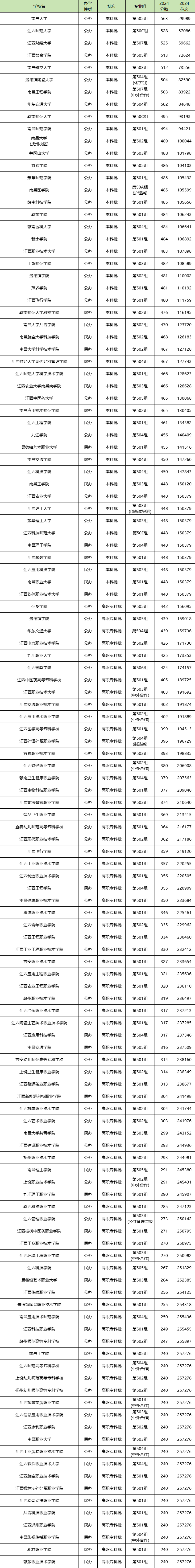 本科大学中最低录取分数线为463分,招生院校是江西软件职业技术大学、江西服装学院等;