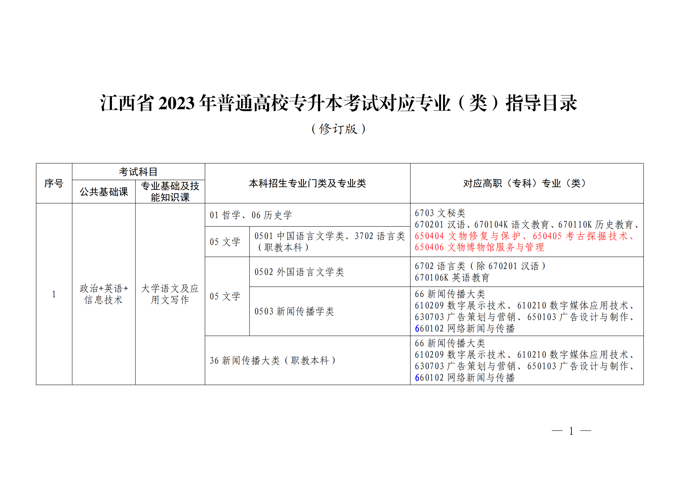 根据江西省2023年普通高校专升本考试对应专业(类)指导目录来看,可以专升本的专科专业有文秘类、汉语、教育类(语文教育、历史教育、英语教育、数学教育、学前教育)、新闻传播大类、财经商贸大类、公安与司法大类、公共管理与服务大类、思想政治教育、体育类、统计类、化工技术类等专业