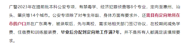 综合来看,高考470分左右,无论首选科目是物理还是历史男性考生,只要符合公安专项填报要求均有机会上广警提前批公安专业。