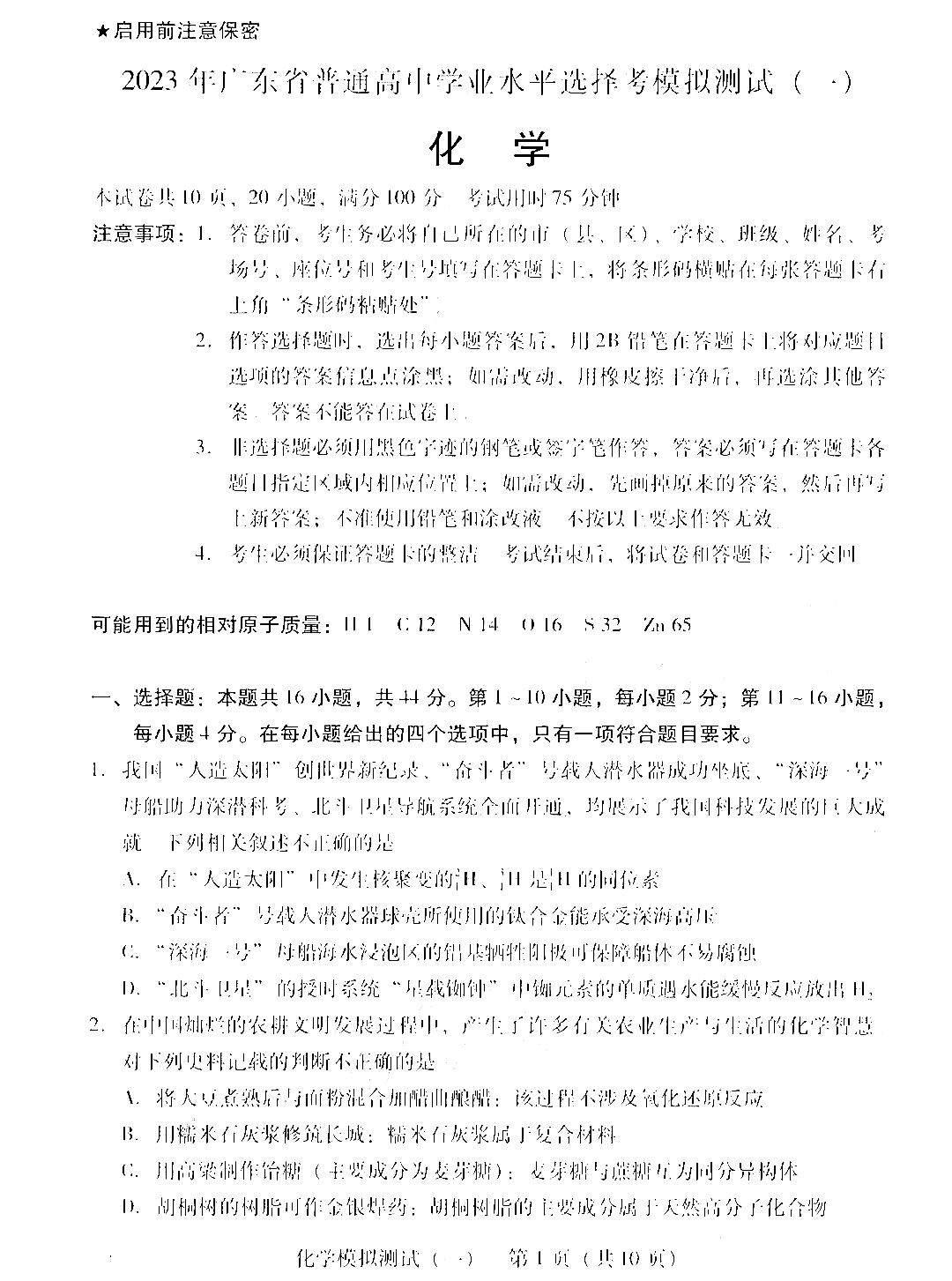 广东2023高三一模将于3月28日开考,同学们应该都很关注2023广东一模的试题及答案。本期将整理广东一模2023化学试题解析及答案参考。希望同学们通过2023广东高三一模化学的答案及试题,及时知晓成绩!