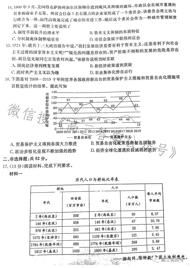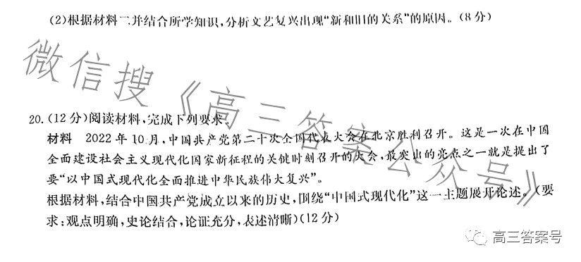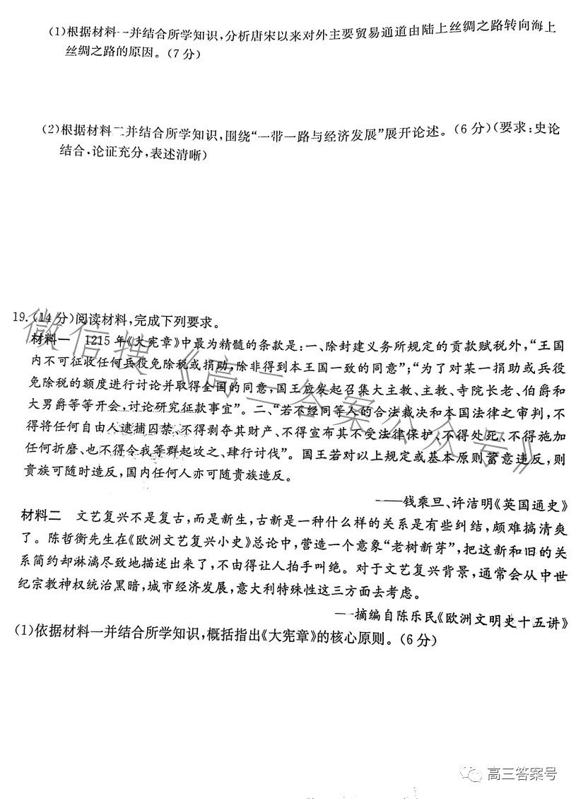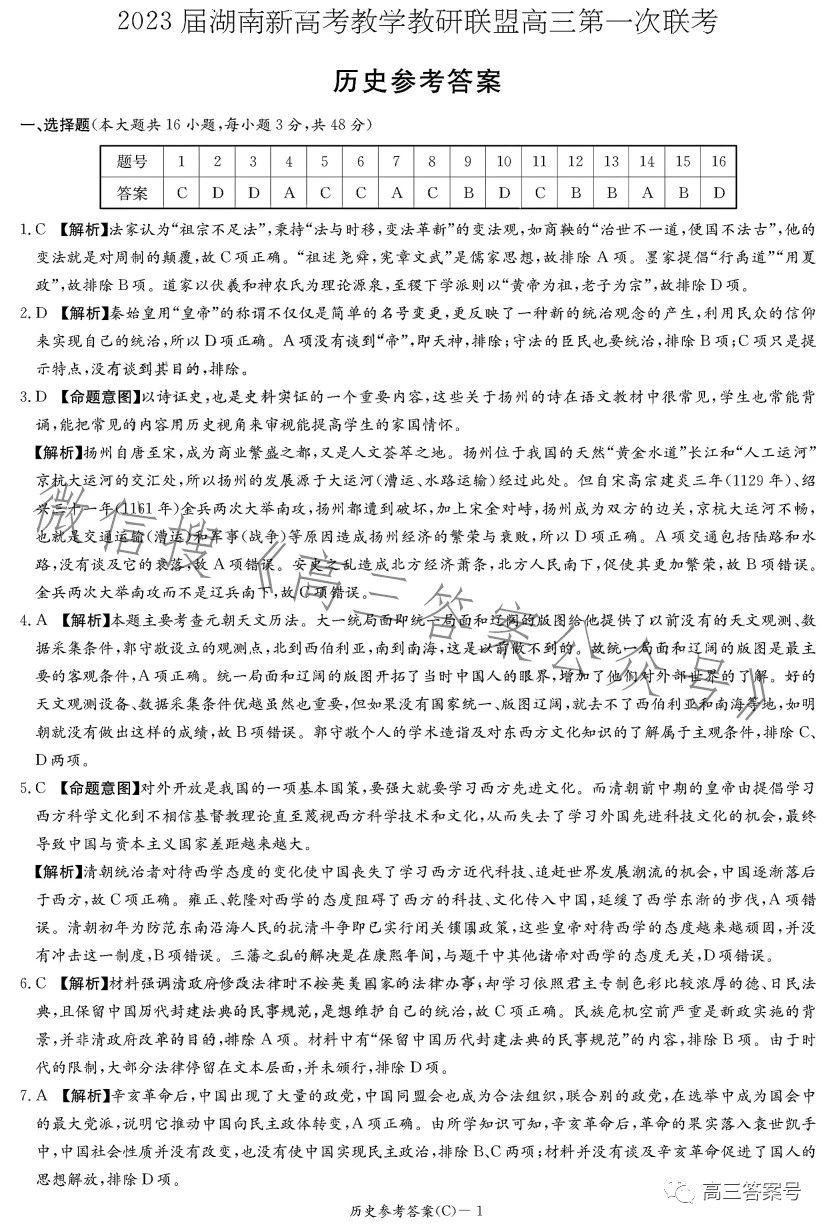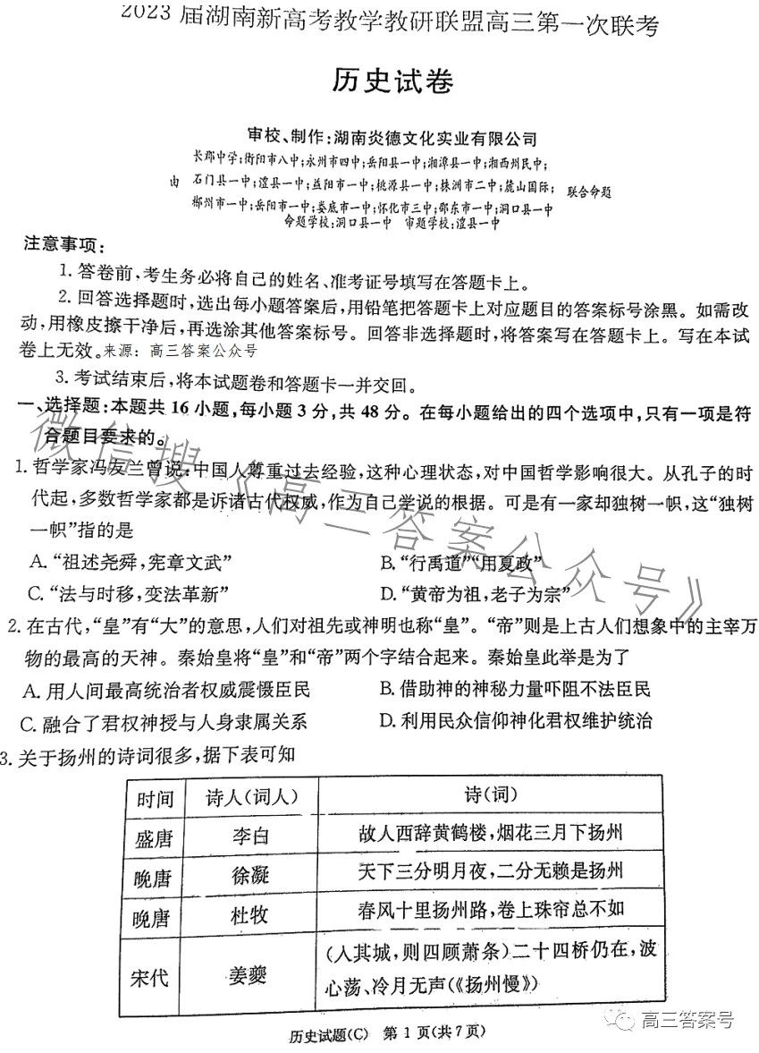 五、2023湖南炎德英才高三3月联考历史试题及参考答案
