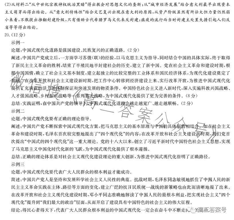 四、2023湖南炎德英才高三3月联考政治试题及参考答案