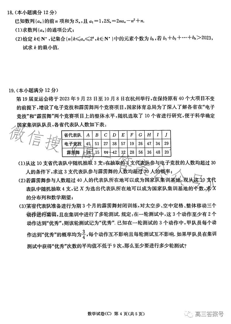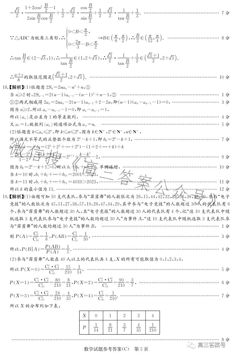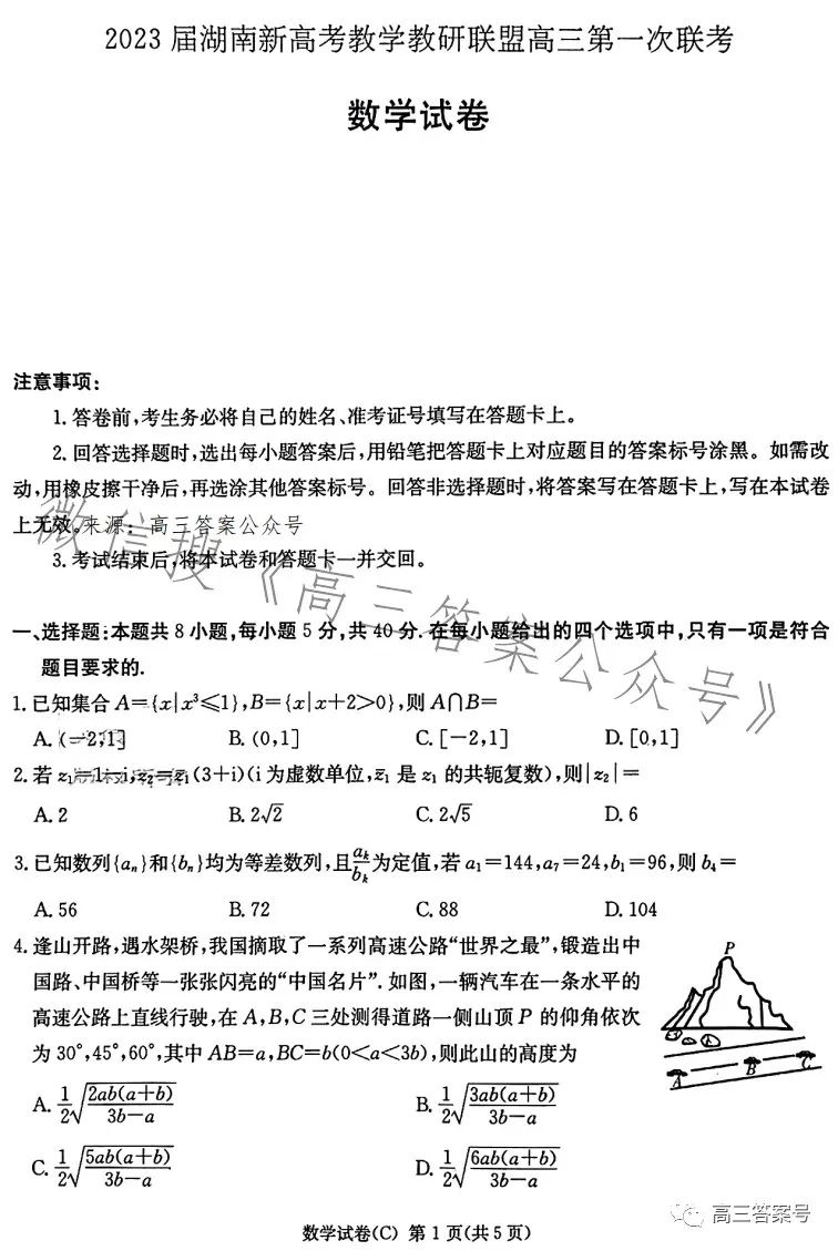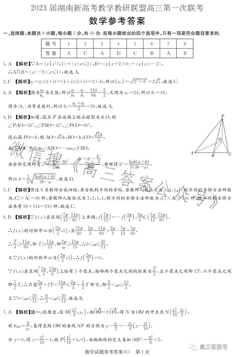 二、2023湖南炎德英才高三3月联考数学试题及参考答案
