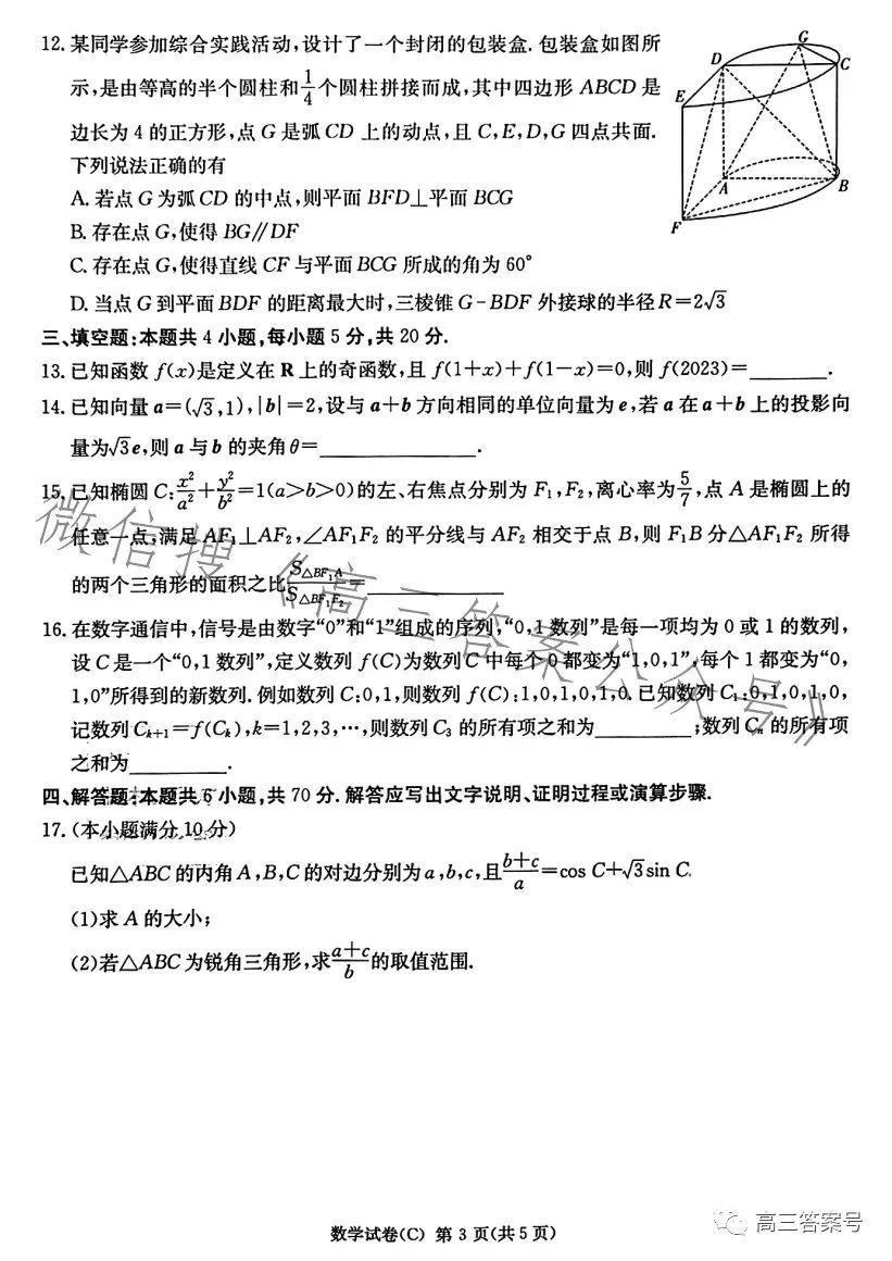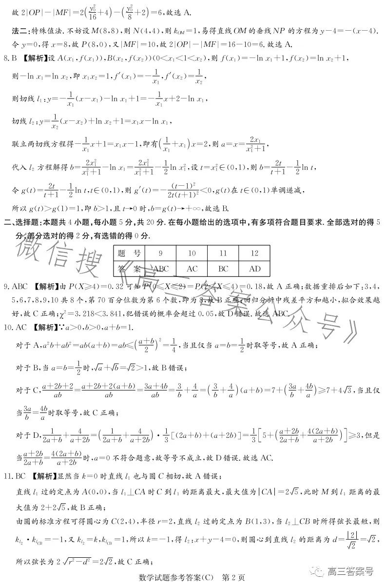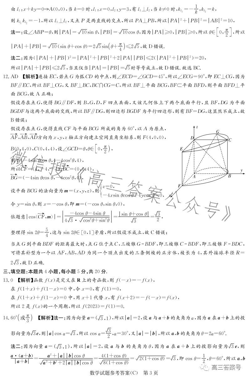 二、2023湖南炎德英才高三3月联考数学试题及参考答案