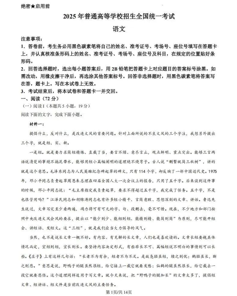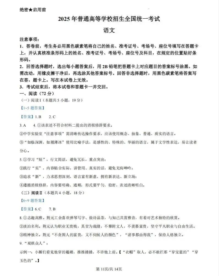 2025新高考二卷语文考试时间为6月7日9:00-11:30,该科目试题由教育部统一命制,适用省份包含甘肃、四川、云南、内蒙古、陕西等地,对应地区考生可在考试结束后前来本文查阅核对答案。正文整理收集了2025新高考二卷语文答案、语文试题解析详情。