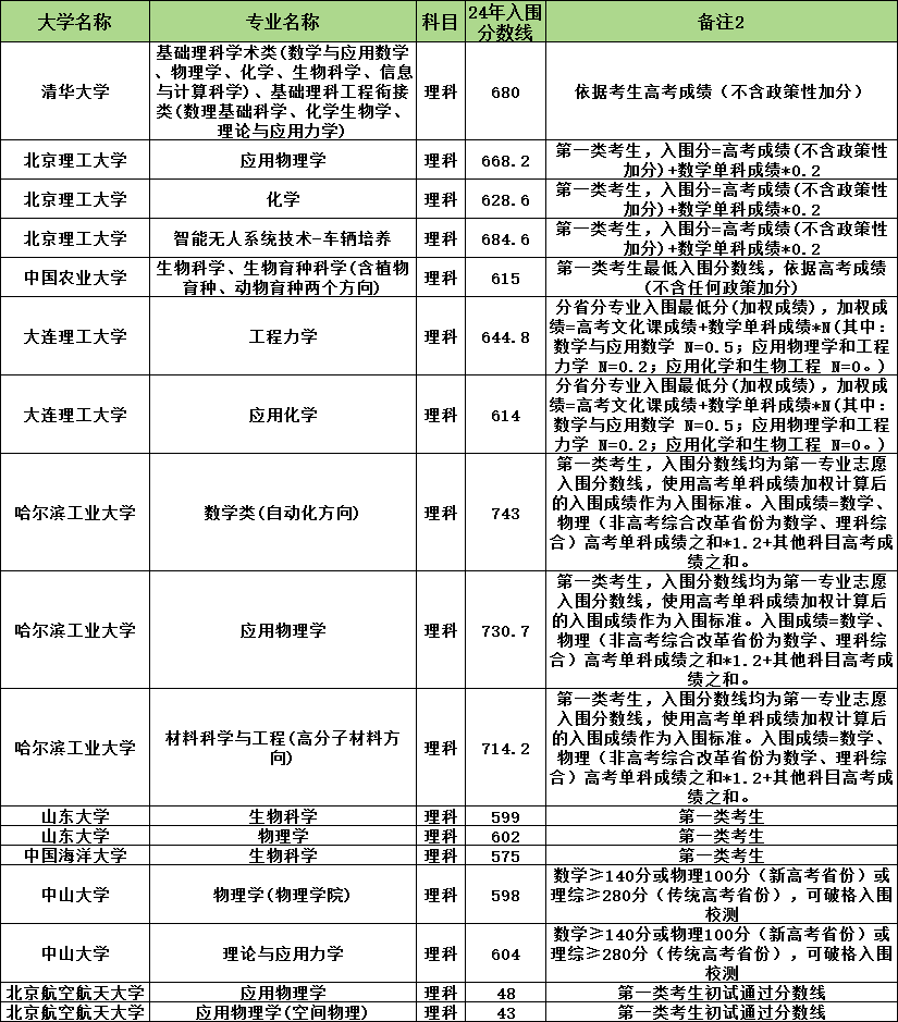复旦、上海交大、南大、浙大、中科大、西安交大、同济、厦大、北航、兰大在高考出分前进行校测,因此没有强基入围分数线。本文整理的高校入围分数线是划线初试成绩。