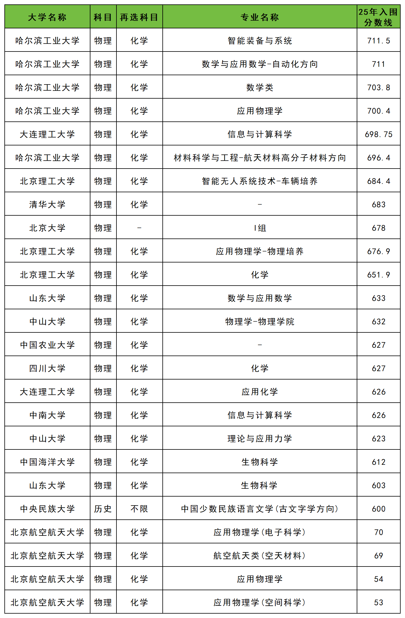 内蒙古强基计划的招生院校有天津大学、北京理工大学、中国农业大学等26所高校,2025年各高校强基计划在内蒙古的入围分数线为:北京航空航天大学物理类53分、北京理工大学物理类651.9分、清华大学物理类683分等。