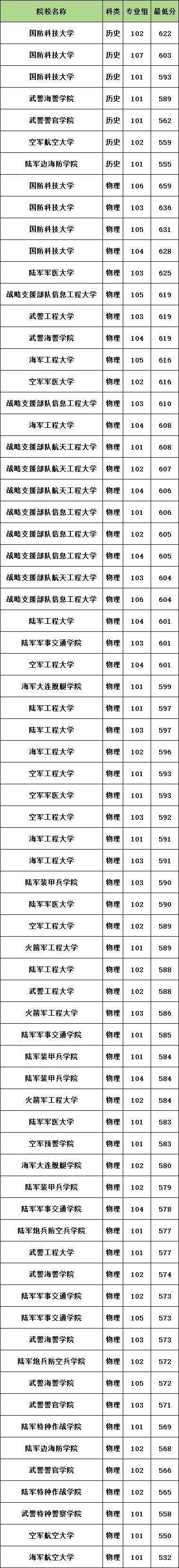 物理类收分最高,最难考的定向军事学校是国防科技大学,2024年录取分数线659分。
