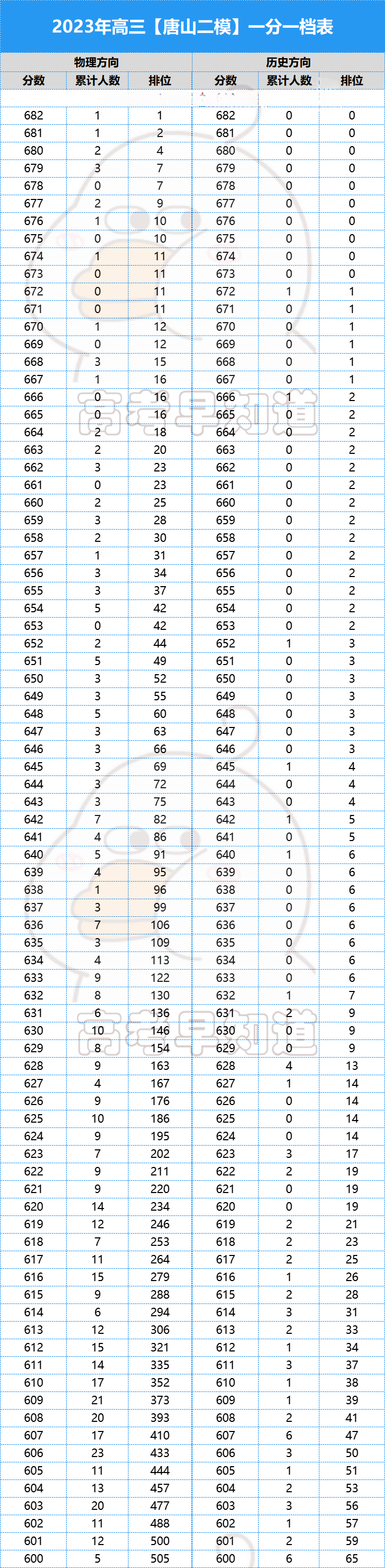 下面为大家附上2023年唐山高三一模一分一段表(篇幅有限,仅展示600分及以上分数段):