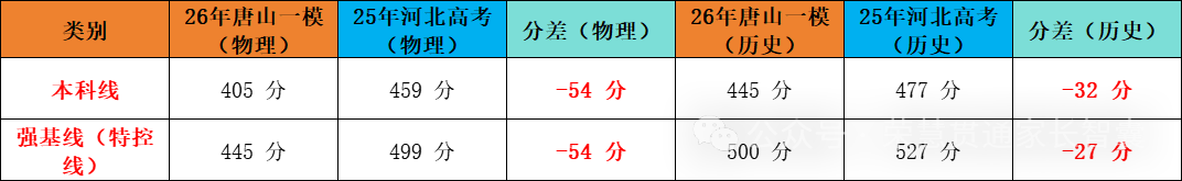河北唐山属于新高考地区,模考一般按照首选物理和首选历史进行单独划线。因为该地区不再区分一本、二本,所以分数线仅按照强基线和本科线进行展示。