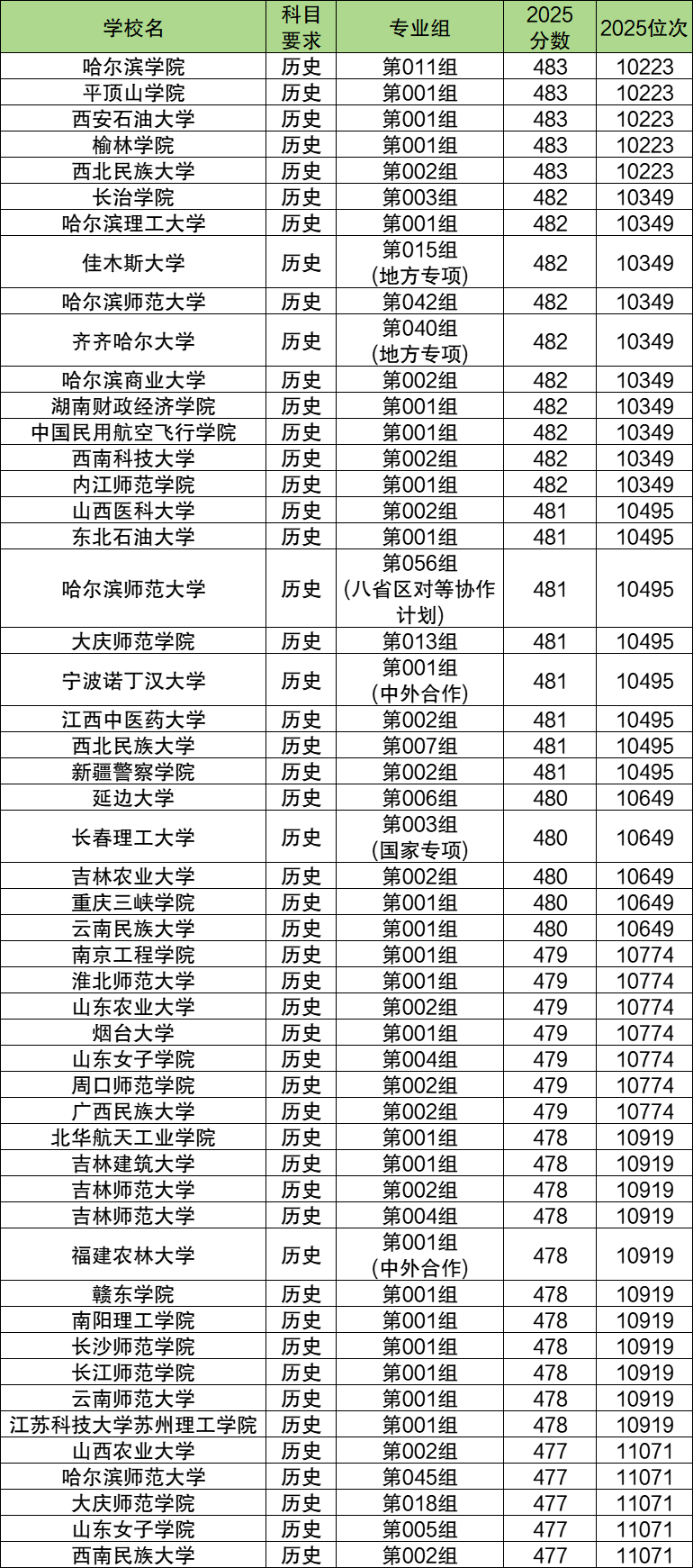 历史类:特殊类型招生资格线为480分,对应位次是10649名。