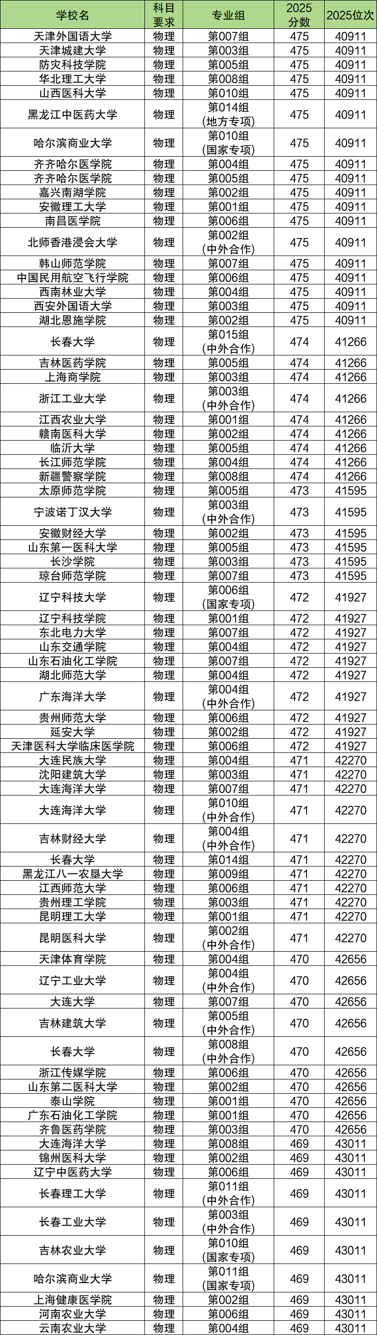 2025年黑龙江物理类特控线附近(469分到475分)能上的本科院校一共有68个,排名靠前的有天津外国语大学(40911名)、天津城建大学(40911名)、防灾科技学院(40911名)等,这些属于特控线附近考生可以冲一冲的学校。