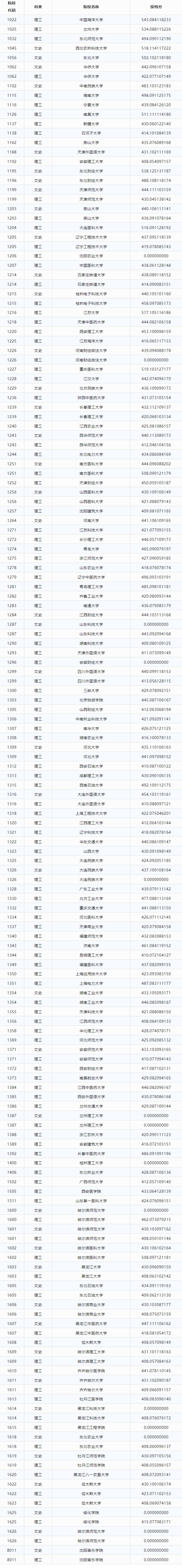 黑龙江本科第一批征集志愿全国学校名单及分数线如下图