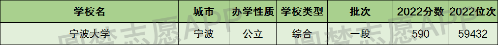 以下为宁波大学,2022年在宁波市的最低分数线