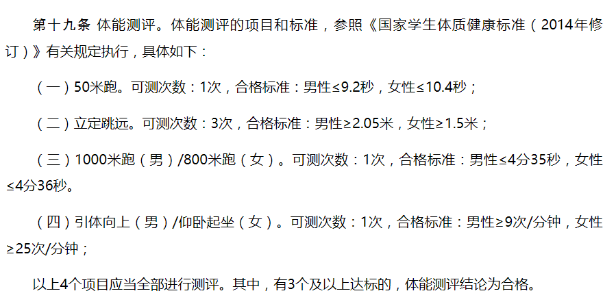 警校除了以上的招生要求外,对考生的年龄、体能测试的要求如下: