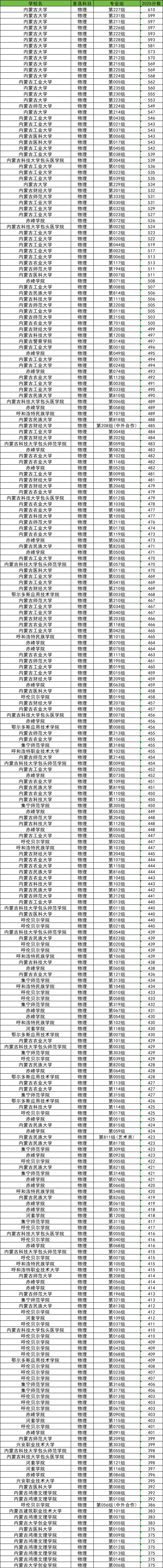下面是2025年内蒙古自治区内本科高校物理类录取分数线一览表: