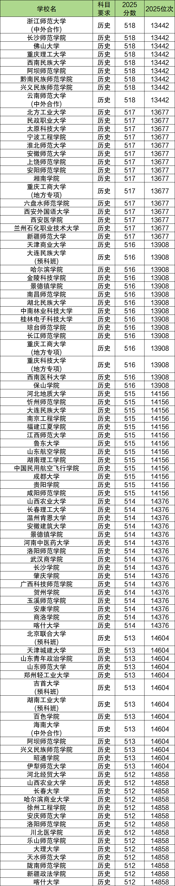 下面是2025年重庆历史类特控线附近能上的本科大学名单一览表: