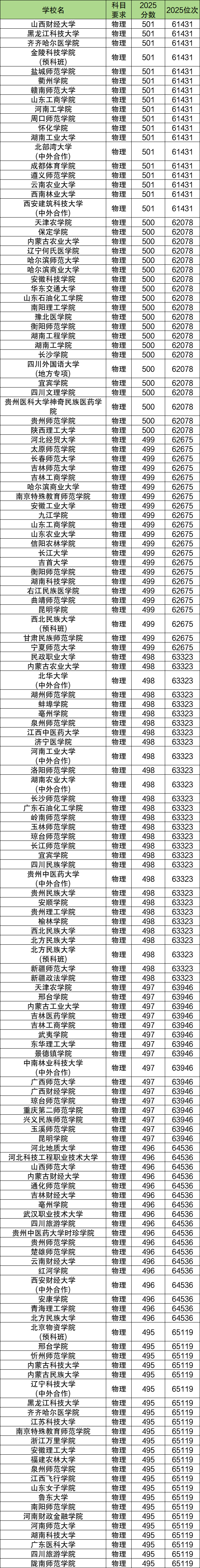排名稍低的有安康学院(64536名)、青海理工学院(64536名)、北方民族大学(64536名)等,这些属于特控线附近比较稳妥能上的大学。