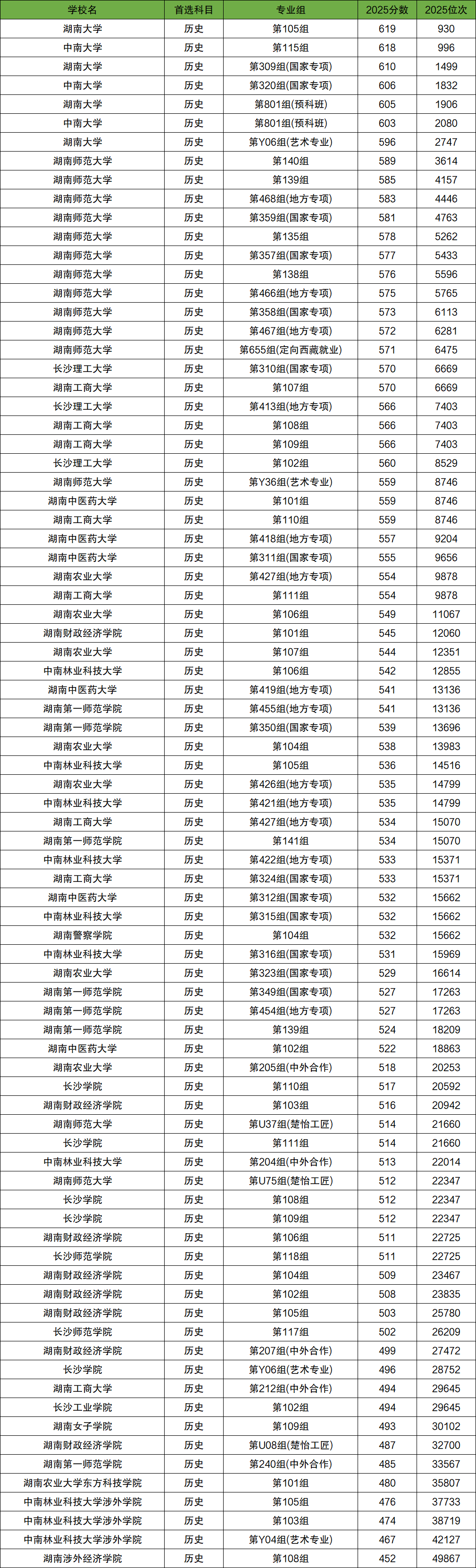 如下仅为各位整理了2025年长沙各大学历史科目考生的最低分数线一览表,供大家参考: