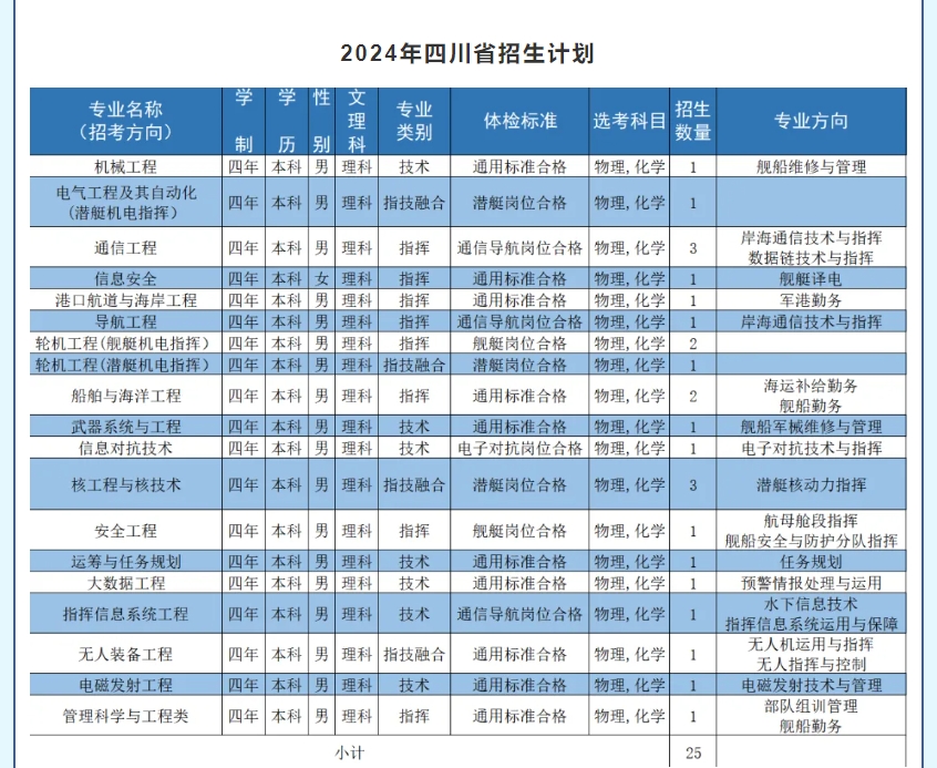 一、海军工程大学2025招生计划