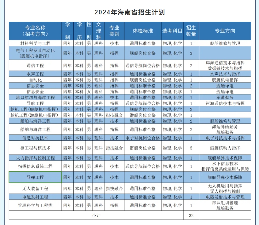 同时本文也整理出2024年海军工程大学的详细招生计划,供2025年考生参考。