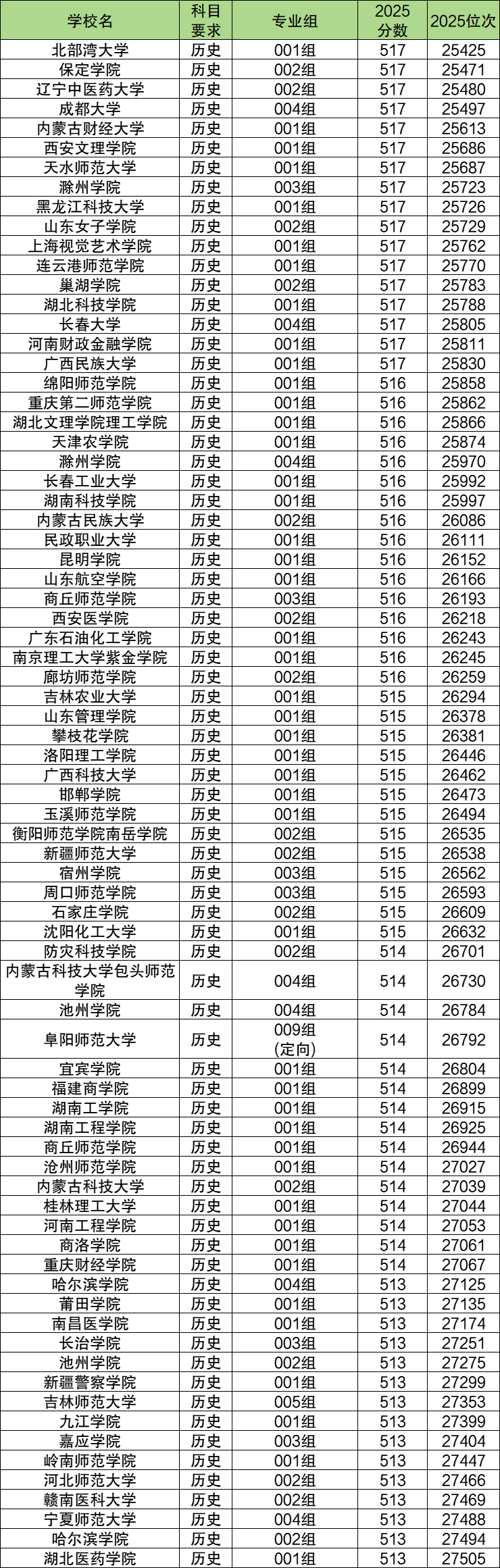 历史类:特殊类型招生录取控制分数线为515分,对应位次是26691名。