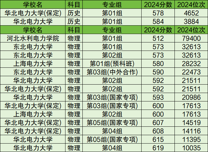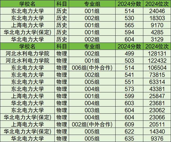 根据数据可知,2024年安徽省历史类收分最低的电力大学有东北电力大学,最低录取分为514分;物理类收分最低的是河北水利电力学院,最低录取分为499分。