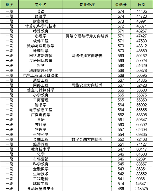 | 网络与新媒体 | 物理 | 本科批 | 570 |