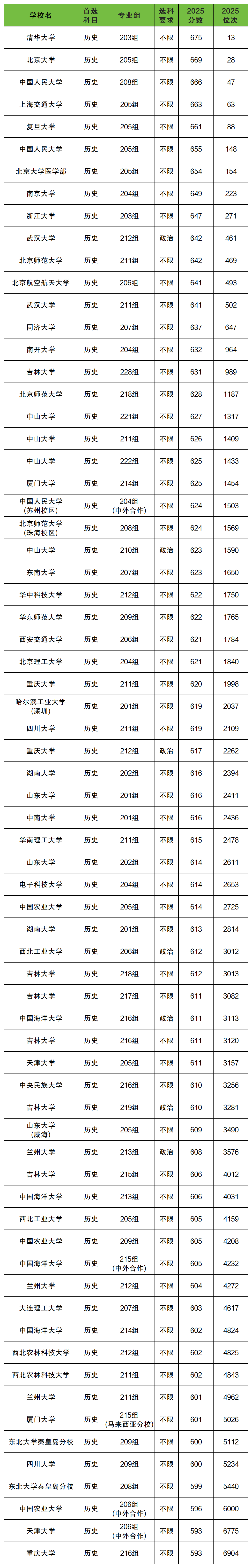 二、文科985大学分数线