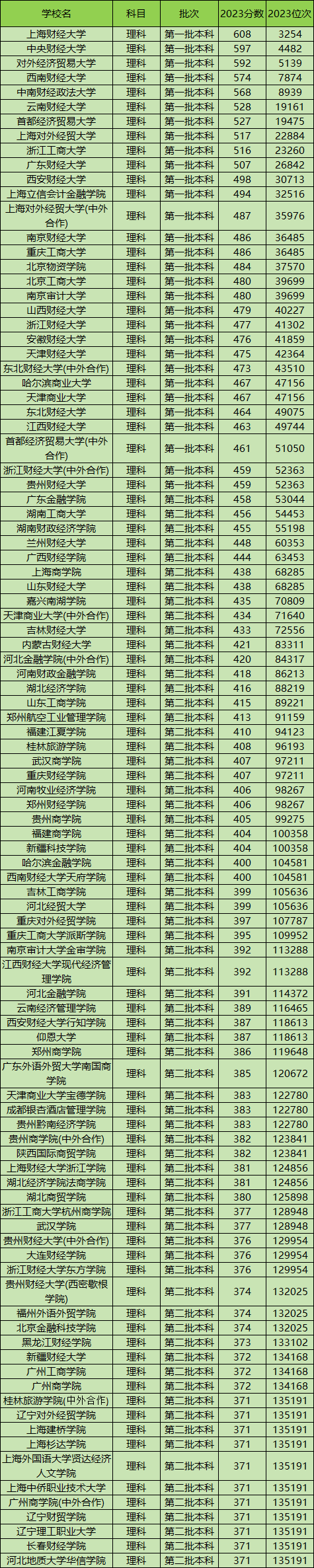 二、理科财经大学名和录取分