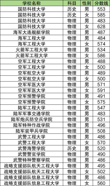 国防科技大学:历史类553分、物理类483分;