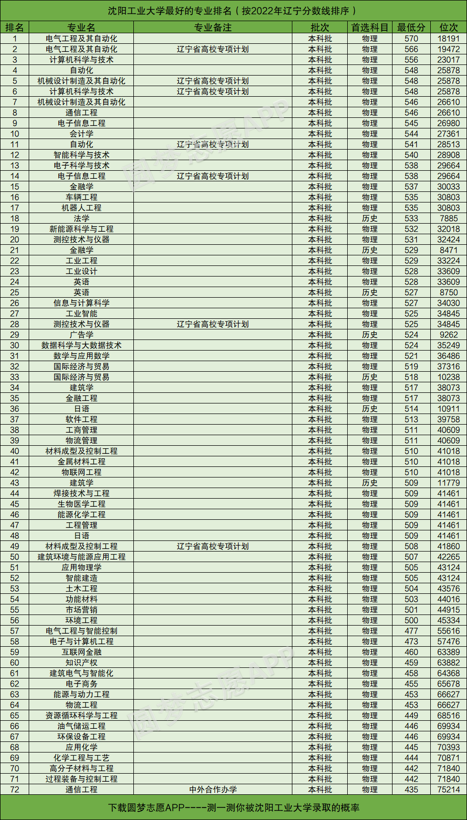 本文将以沈阳工业大学在辽宁2022年高考的录取情况为例,为大家展示沈阳工业大学最好的专业排名。