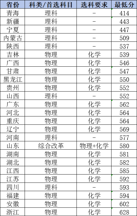 6、浙江省:最低628分