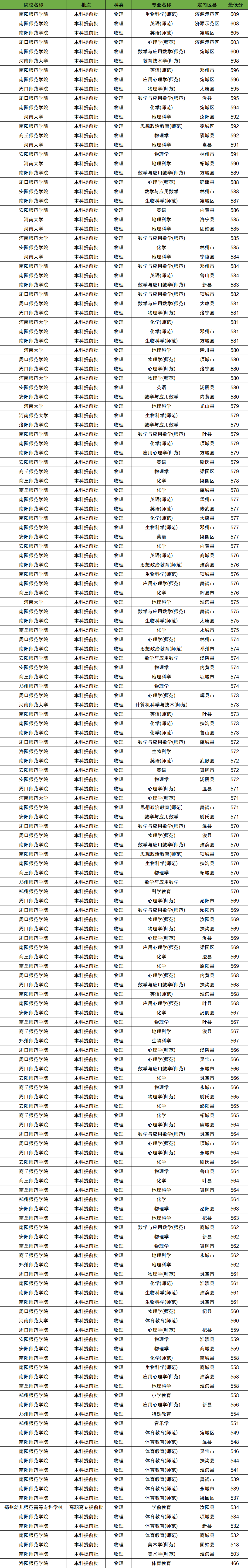 以下是省属公费师范生在河南各专业录取分数线2025年一览表汇总,供参考: