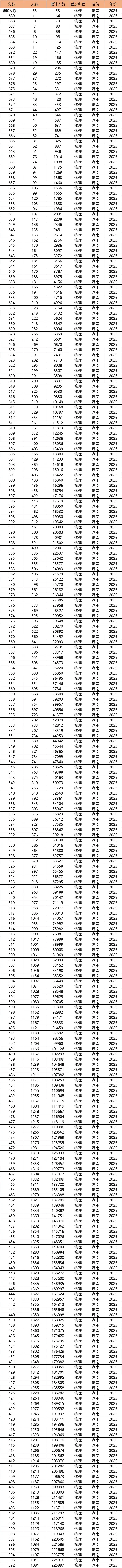 2025年湖南高考历史科目组合分数排名表已出炉,历史类600分对应位次排名2369名、550分对应位次排名10822名、500分对应位次排名27038名,更多分数线详情见下表。