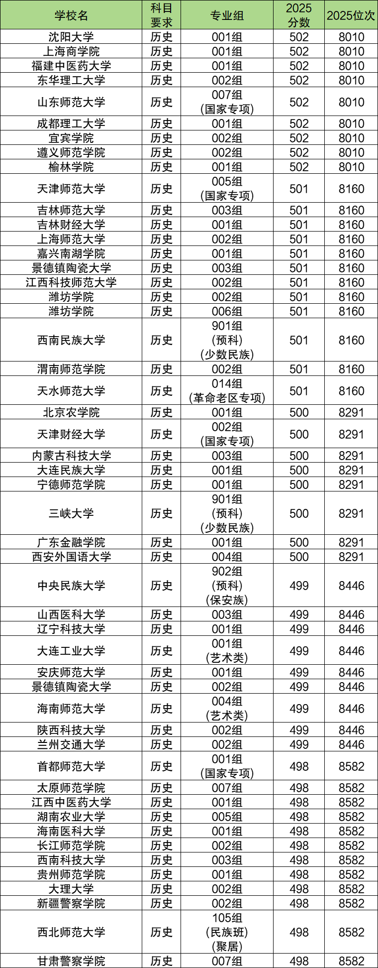 下面是2025年甘肃历史类特控线附近能上的本科大学名单一览表:
